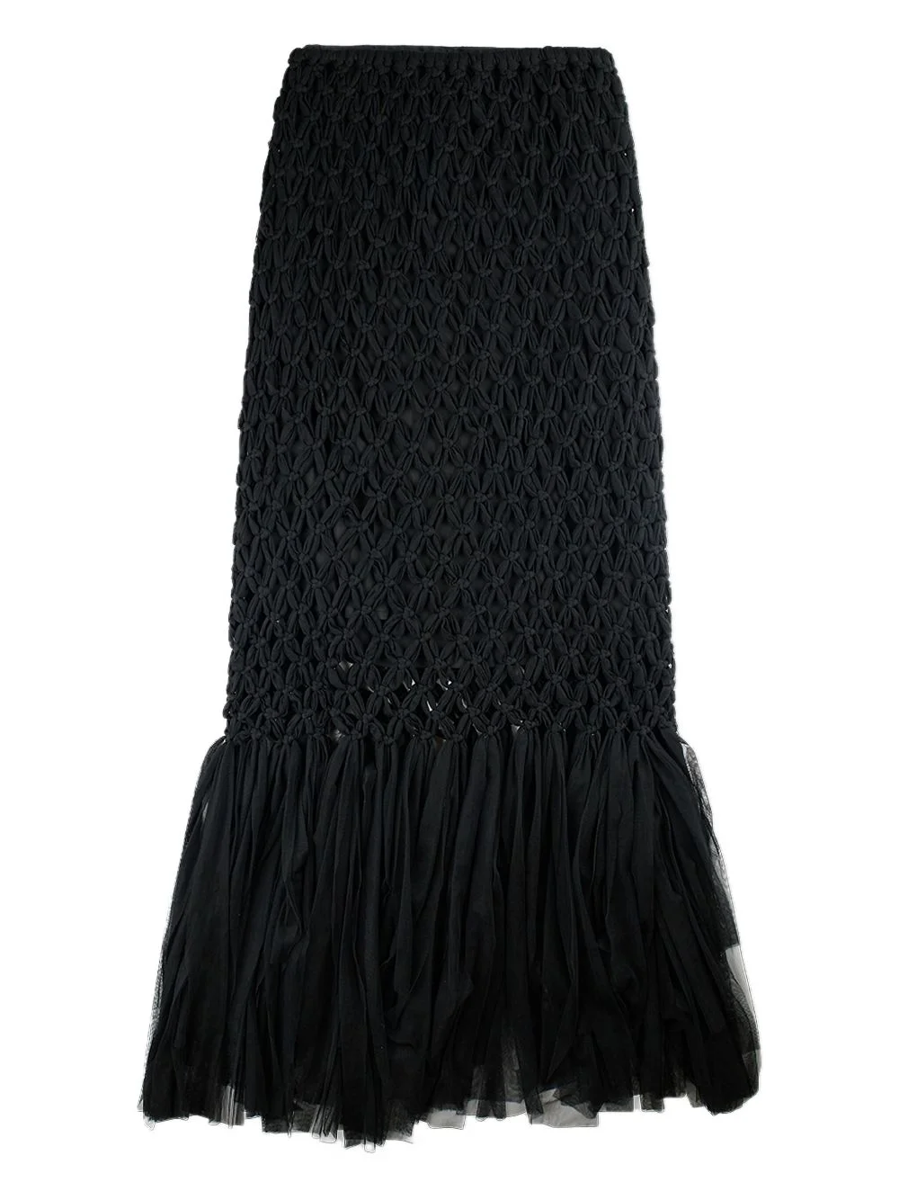 macrame maxi skirt Highlights - Black - Self-tie fastening - Tied waist - Fringe detailing - Partial lining Imported Composition Outer: Nylon 100% Cupro 100% Washing instructions Read Manufacturer Guidelines