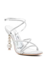 100mm Perla sandals Highlights - Silver-tone - Buckle-fastening ankle strap - High sculpted heel - Branded footbed - Glitter detailing Imported Composition Lining: Calf Leather 100% Outer: Polyurethane 100% Sole: Calf Leather 100% SIZE & FIT Measurement HEEL 4.33 in(11 cm)