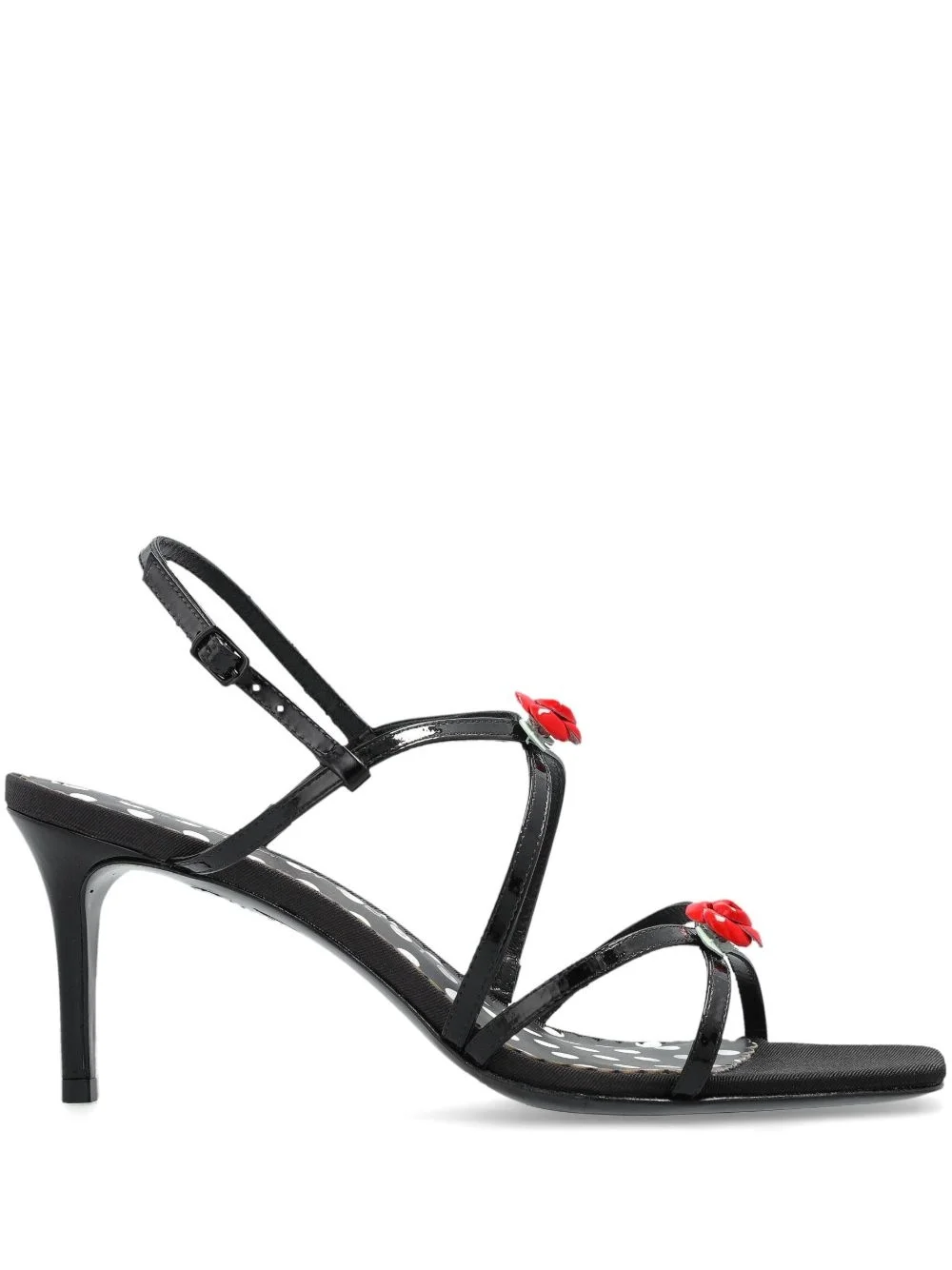 85mm Sophia sandals Highlights - Black - Buckle-fastening ankle strap - Square open toe - High stiletto heel - Floral applique Imported Composition Sole: Calf Leather 100% Lining: Calf Leather 100% Outer: Calf Leather 100% SIZE & FIT Measurement HEEL 3.34 in(8.5 cm)