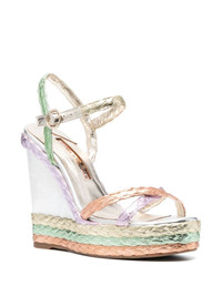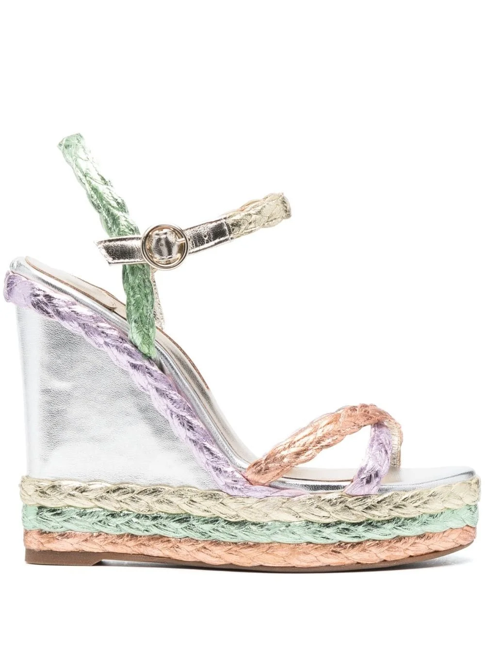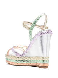 Ines espadrille wedge sandals Set on a silver-tone high wedge, the Ines sandals from Sophia Webster are detailed with metallic braided raffia accents for a bright finishing touch. Highlights - Multicolour - Calf leather - Colour-block design - Metallic finish - Braid detailing - Crossover strap detail - Buckle-fastening ankle strap - High wedge heel Imported Composition Lining: Calf Leather 100% Sole: Rubber 100% Outer: Polypropylene 100% SIZE & FIT Measurement HEEL 5.31 in(13.5 cm) Sole height 1.37 in(3.5 cm)
