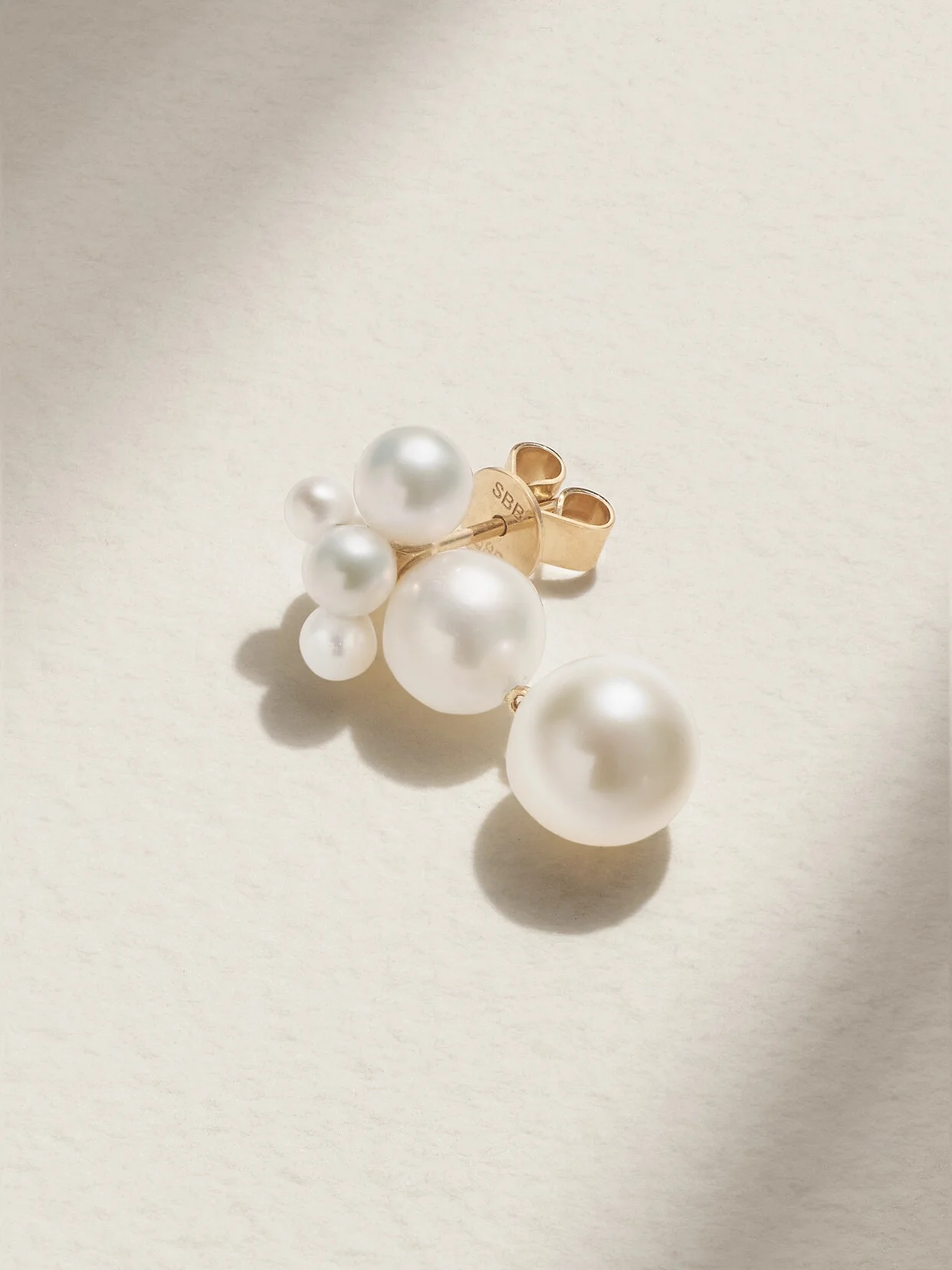 Danish jeweler Sophie Bille Brahe creates whimsical pieces that have a sense of cosmic wonder. This single 'Bisou' earring is made from 14-karat gold set with a cluster of freshwater pearls. Wear it alongside dainty studs.