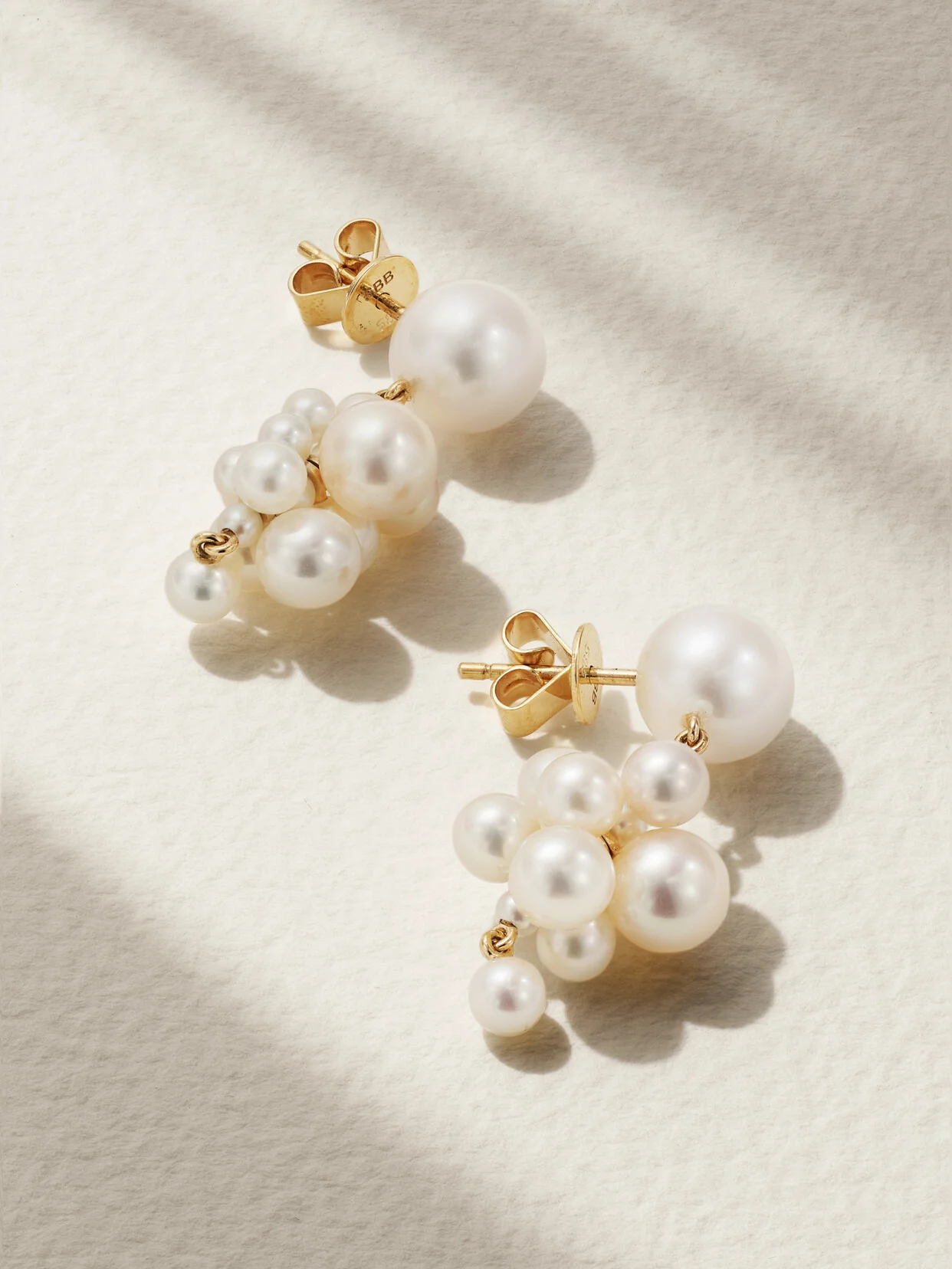Sophie Bille Brahe's jewelry is inspired by a variety of artists, including Pablo Picasso, Cy Twombly and Sandro Botticelli, whom these earrings are named after. Cast from 14-karat gold, they're decorated with clusters of glossy pearls that fall just below the jawline.