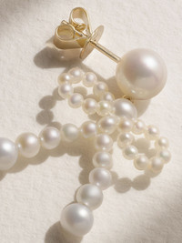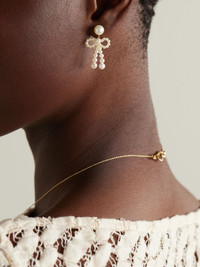 Bow 14-karat recycled gold pearl earrings Gold
