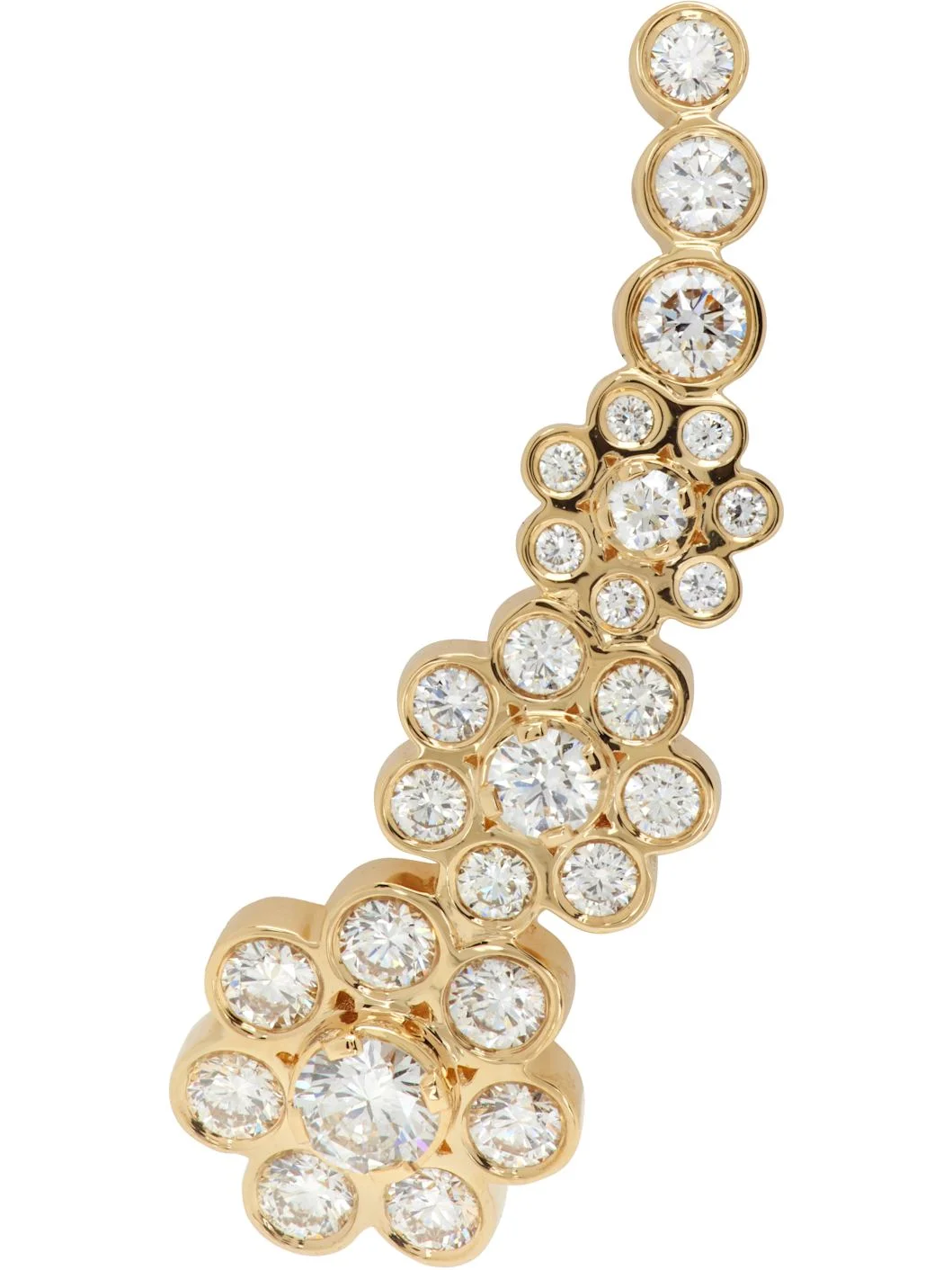 Single earring in recycled 18k yellow gold. · Top Wesselton VVS 0.57 cttw diamonds · Brilliant-cut, bezel setting · Diamond color: F–G · Floral construction at face · Hook fastening · H1" x W0.25" Supplier color: 18k recycled YG Recycled 18k gold, diamond. Made in Thailand 261686F009007