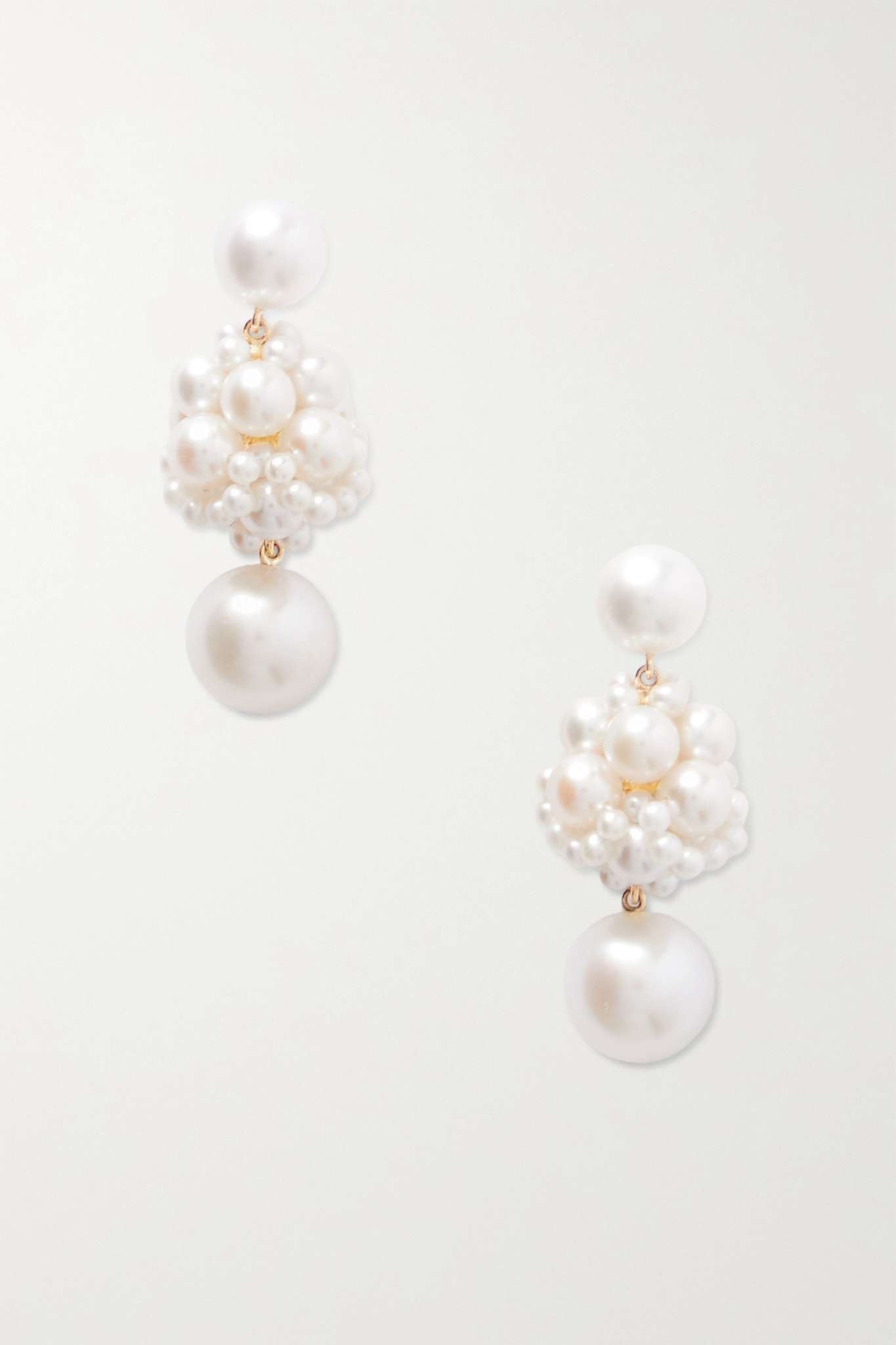 EDITORS'NOTES Sophie Bille Brahe's 'Dora' earrings are set with 100 freshwater pearls in elegant clusters. They're handmade from 14-karat certified recycled gold and will be a beautiful addition to your evening look. SIZE & FIT This item’s measurements are: - Length: 3cm / 1.2in - Width: 1.5cm / 0.6in DETAILS & CARE - Butterfly fastening for pierced ears - Freshwater pearls: China - This piece has been certified in accordance with the Hallmarking Act 1973