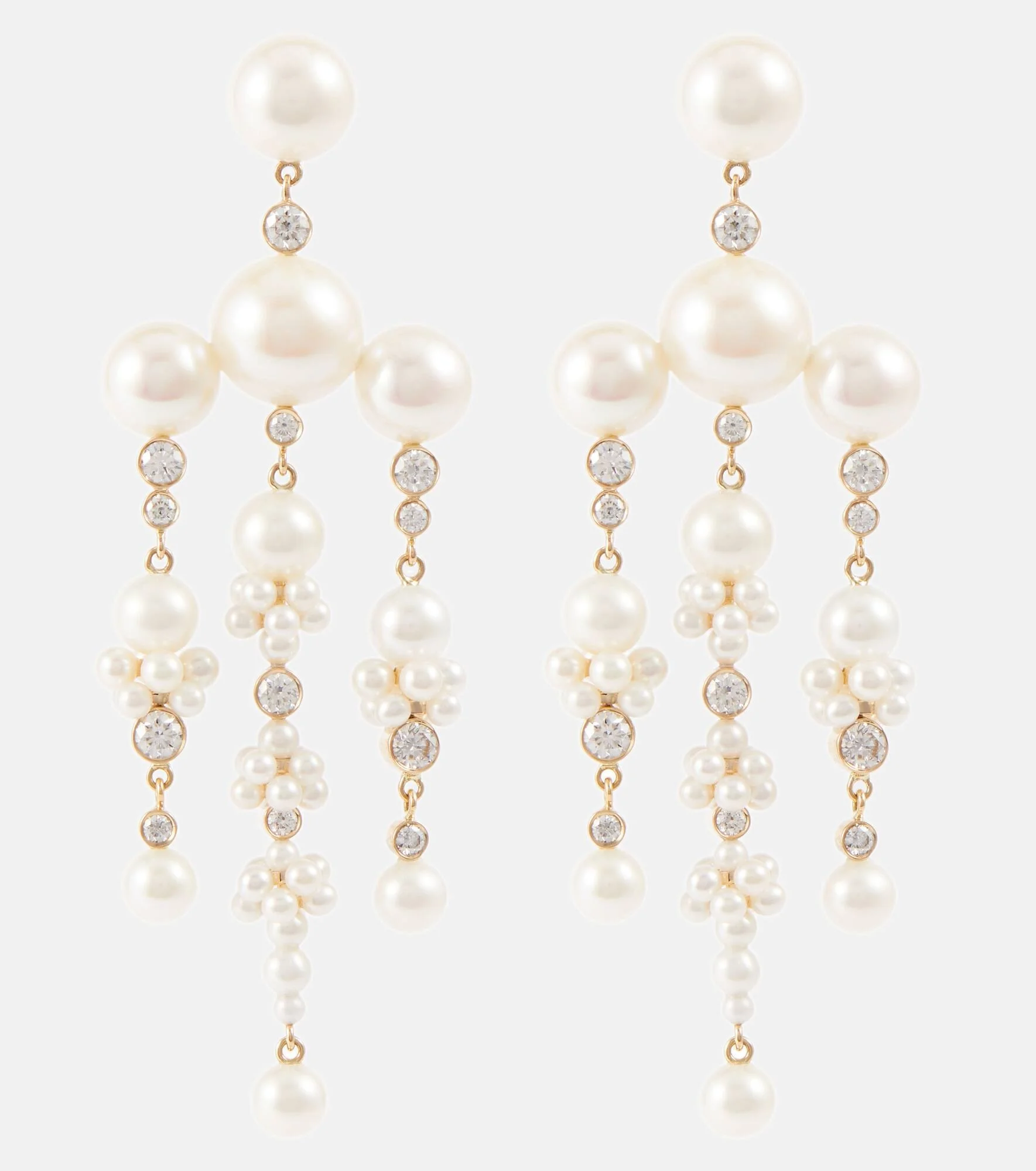 Sophie Bille Brahe's Jardin de Rêve capsule is the designer's first collection to combine pearls and diamonds. The Jardin de Rêve earrings are crafted from 14kt yellow gold in a chandelier design with freshwater pearls and bezel-set round diamonds. Product Details - Material: 14kt yellow gold - Made in Thailand - Stone I: white diamonds - Pearl: freshwater - Closure: butterfly-back fastening - Designer color name: Yg Pearl - Item number: P00749835 Size & Fit - Length 64mm-2.5" - Max. width 22mm-0.85"