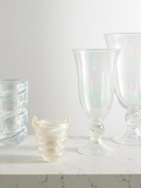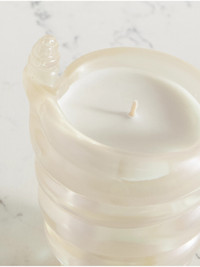 Sophie Bille Brahe's 'Nuage Madison' candle has top notes of Clove and Pink Pepper, a heart of Cedar and Thyme and base notes of Amber, White Musk and Sandalwood. Vanilla runs throughout the fragrance, creating a welcoming feeling of home. The pearlescent, twisted vessel is inspired by clouds and makes a beautiful piece of decoration after the wax has burnt through.