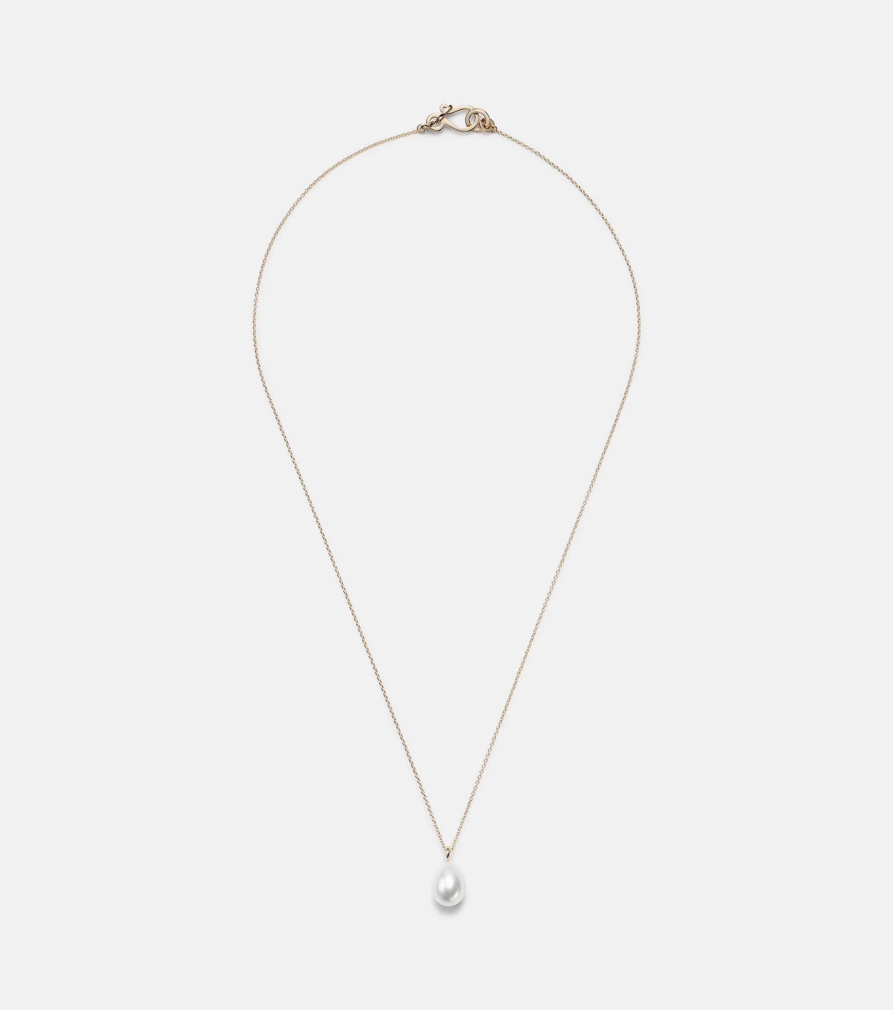 Danish designer Sophie Bille Brahe believes that jewelry should be personal and tell a story. The Perle Poire Simple necklace is crafted from 14kt yellow gold and complete with dazzling freshwater pearls. Product Details - Material: 14kt yellow gold - Made in Thailand - Item color: gold - Pearl I: freshwater cultivated, round shape, pear shape, oval shape - Item number: P01115941 Size & Fit - Length when open 43,5cm-17" - Width 1mm-0.05" - Pendant length 15mm-0.6" - Pendant width 8mm-0.3"