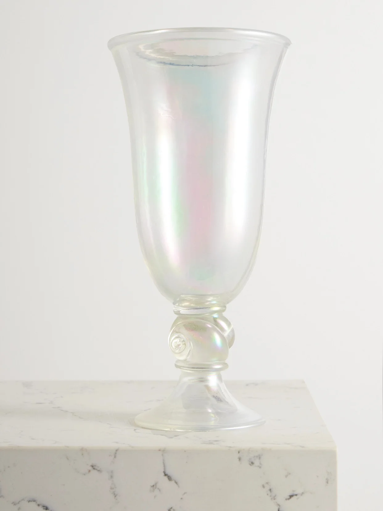 Sophie Bille Brahe's vase is named after the playful 'Escargot' shell at the stem. Handcrafted in Italy, it's made from iridescent Murano glass and has an elegantly tapered shape.