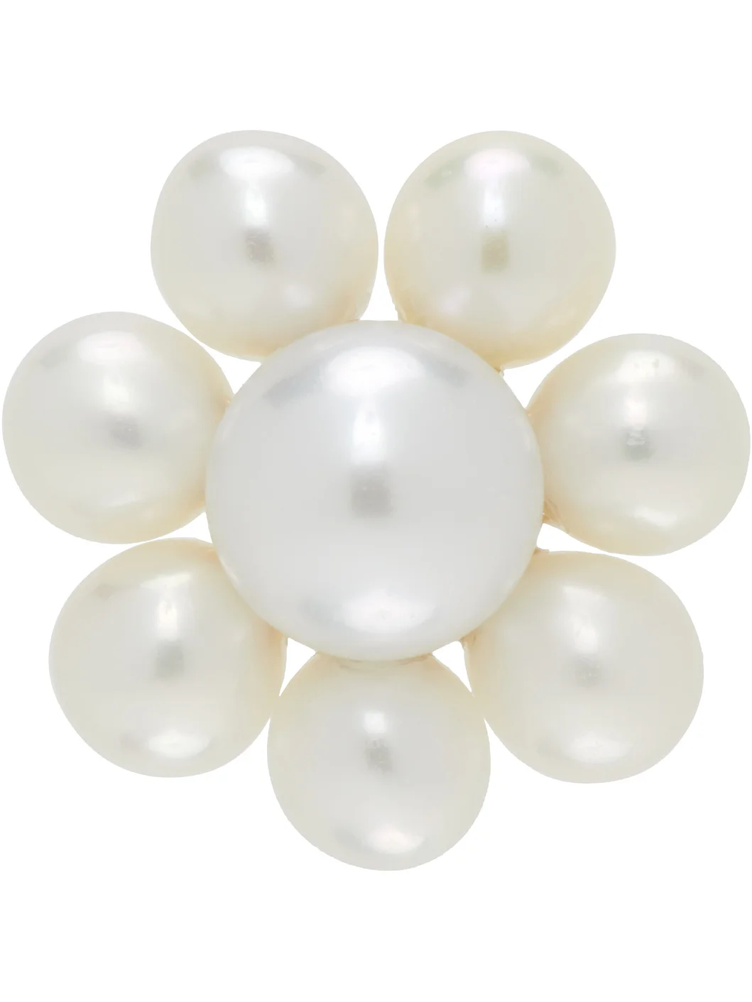 Single stud earring in recycled 14k yellow gold. · Floral construction · Freshwater pearls at face · Post-stud fastening · D0.25" Supplier color: 14k recycled YG Recycled 14k gold, freshwater pearl. Made in Thailand 261686F009000