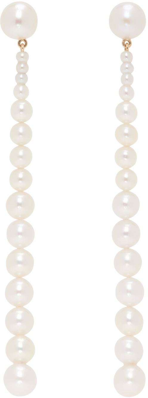 Pair of drop earrings in recycled 14k gold. - Freshwater pearls at drop - Post-stud fastening - H2.5 x W0.25 Supplier color: 14k yellow gold/Pearls