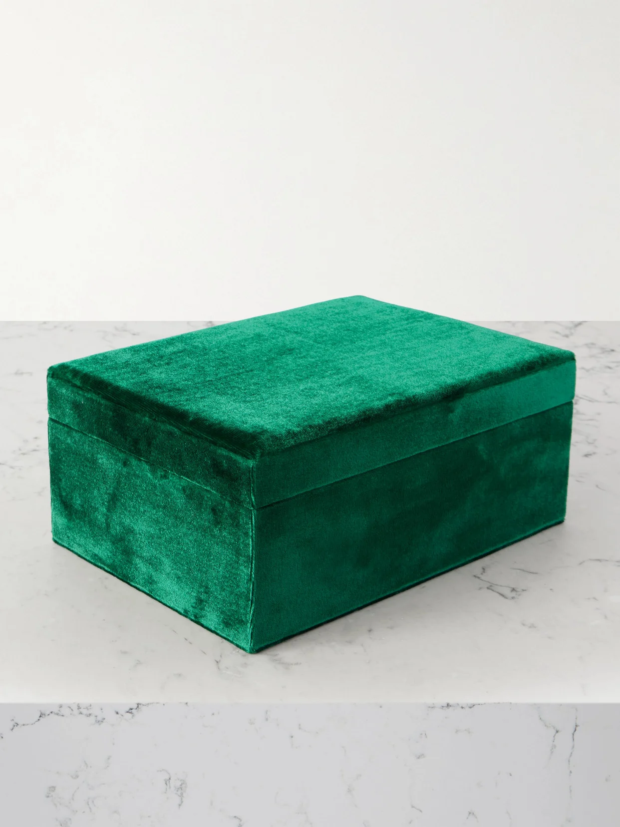 Sophie Bille Brahe's jewelry box is perfect for organizing your favorite treasures. Crafted in Italy, it's made from emerald velvet and has five internal compartments - use the longer one to keep your necklaces from tangling. Please note, jewelry is not included.