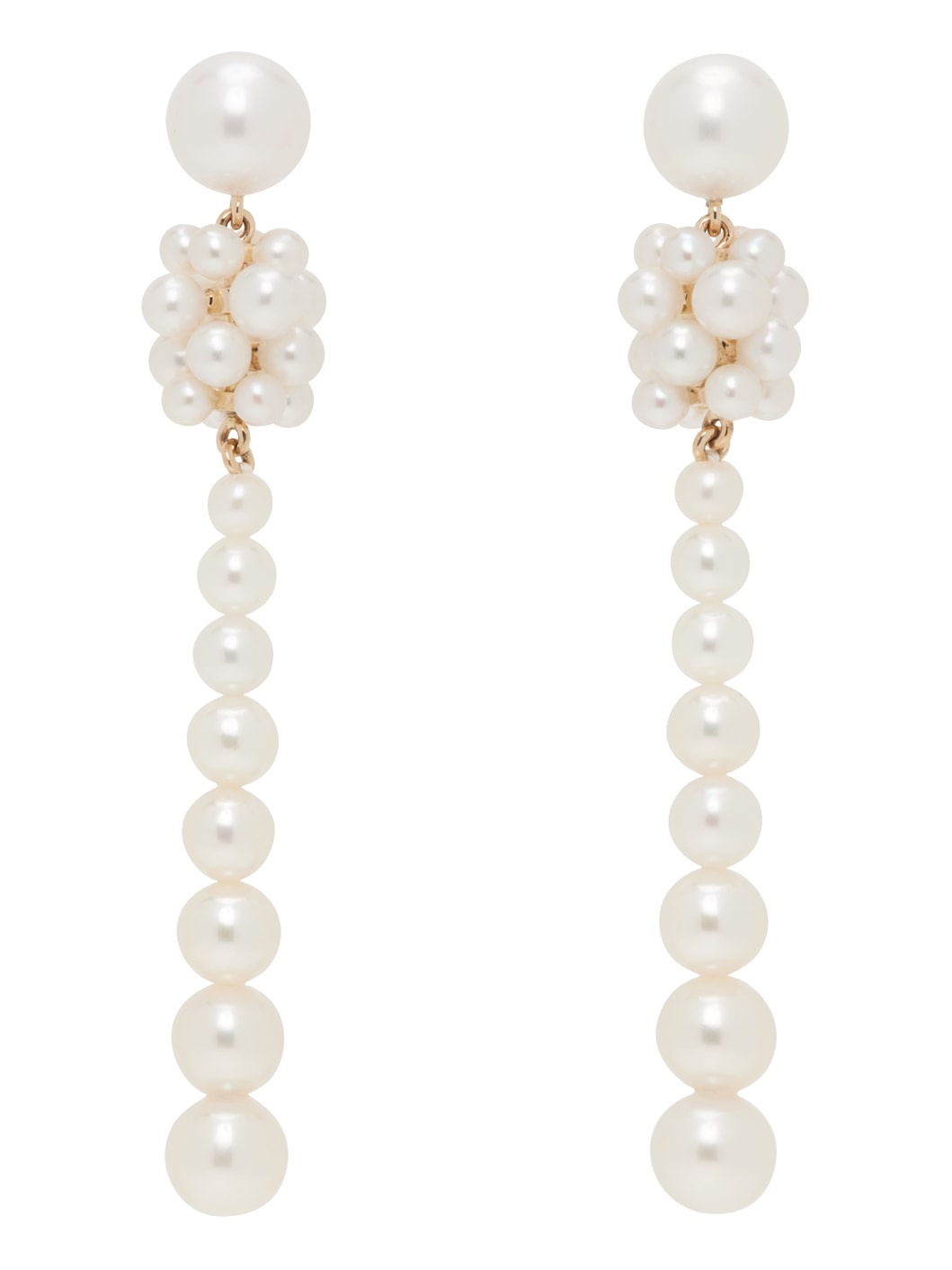 Pair of freshwater pearl drop earrings in white. · Freshwater pearls at drop · Post-stud fastening · Recycled 14k gold hardware · H1.75" x W0.25" Supplier color: 14k YG