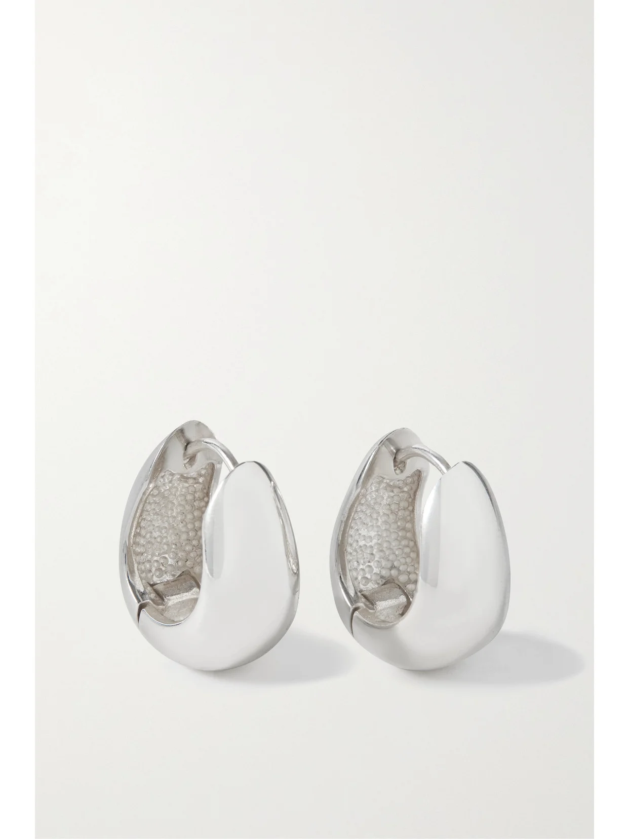 Sophie Buhai's earrings are designed in a chunky hoop silhouette that makes the classic style feel fresh and modern. They've been handcrafted in downtown LA from polished silver and have a discreet hinge for easy on and off. This product was Locally Made. Find out more about NET SUSTAIN here.