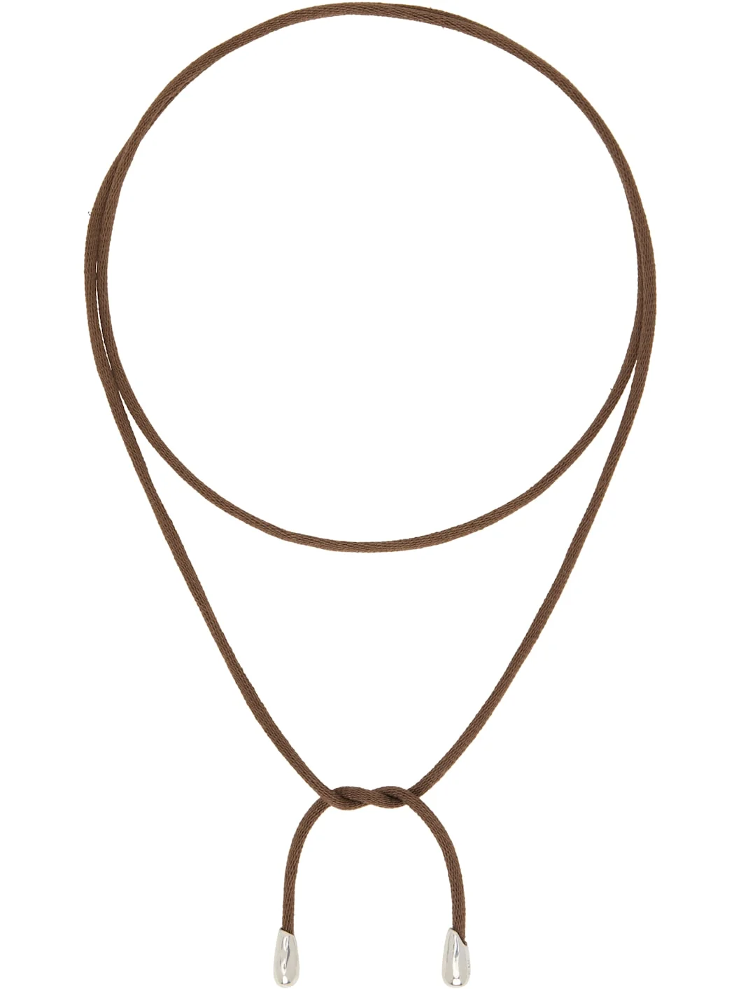 Wraparound cotton cord chocker in brown. · Handcrafted · Sterling silver hardware at ends · Self-tie fastening · L39" Supplier color: Brown Textile, sterling silver. Made in United States 261942F023013