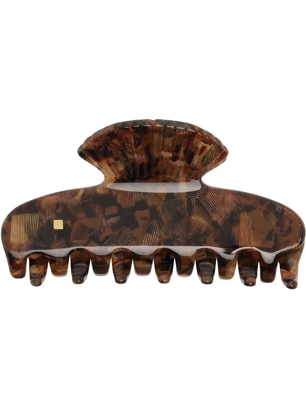 Handcrafted tortoiseshell acetate hair clip. · Logo plaque at face · H1.75" x W3" Supplier color: Ecaille Acetate. Made in France 261942F018012
