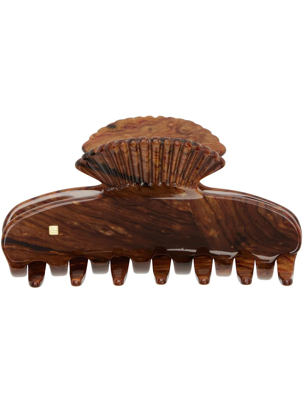 Handcrafted acetate hair clip. · Logo plaque at face · H1.5" x W3.25" Supplier color: Burl Acetate. Made in France 252942F018005