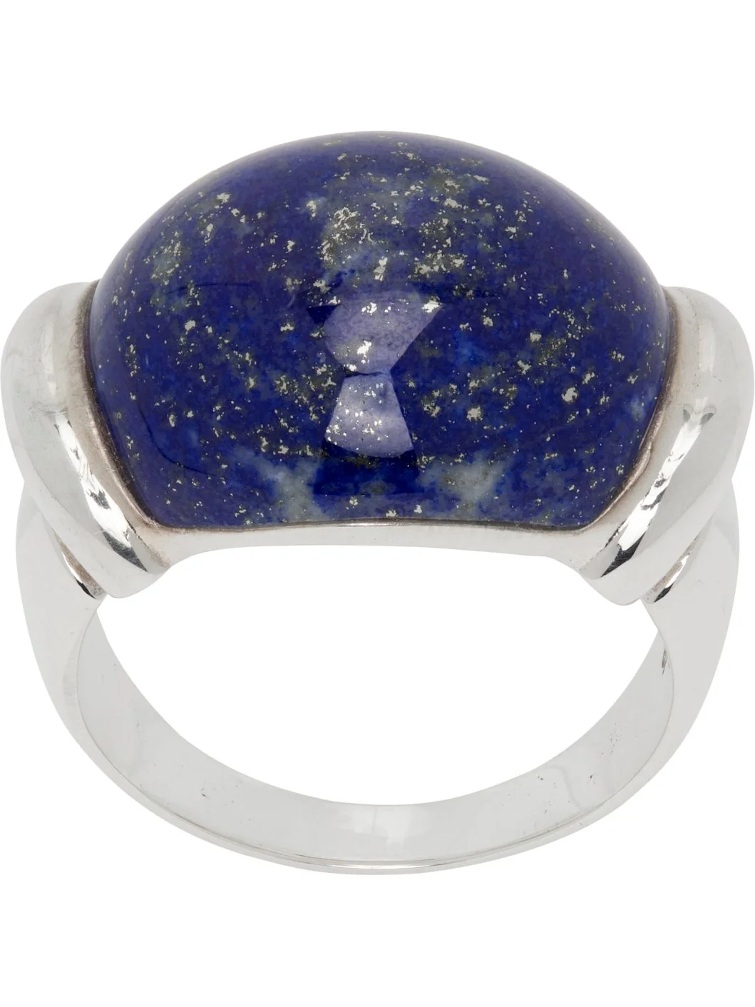Handcrafted ring in sterling silver. · Lapis lazuli stone at face · Hallmarking at inner band Supplier color: Sterling silver/Lapis Sterling silver, lapis lazuli. Made in United States 261942F024005