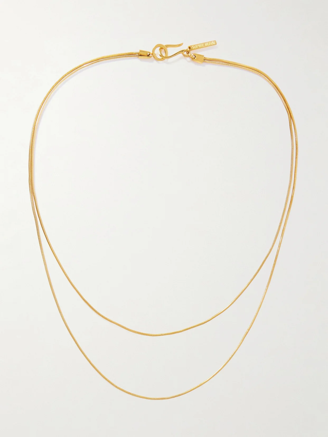 Sophie Buhai's creations always have an elegant sense of restraint. This 'Diana' necklace is made from slim gold vermeil links that drape in two tiers. The short drop hangs perfectly under an open shirt collar.
