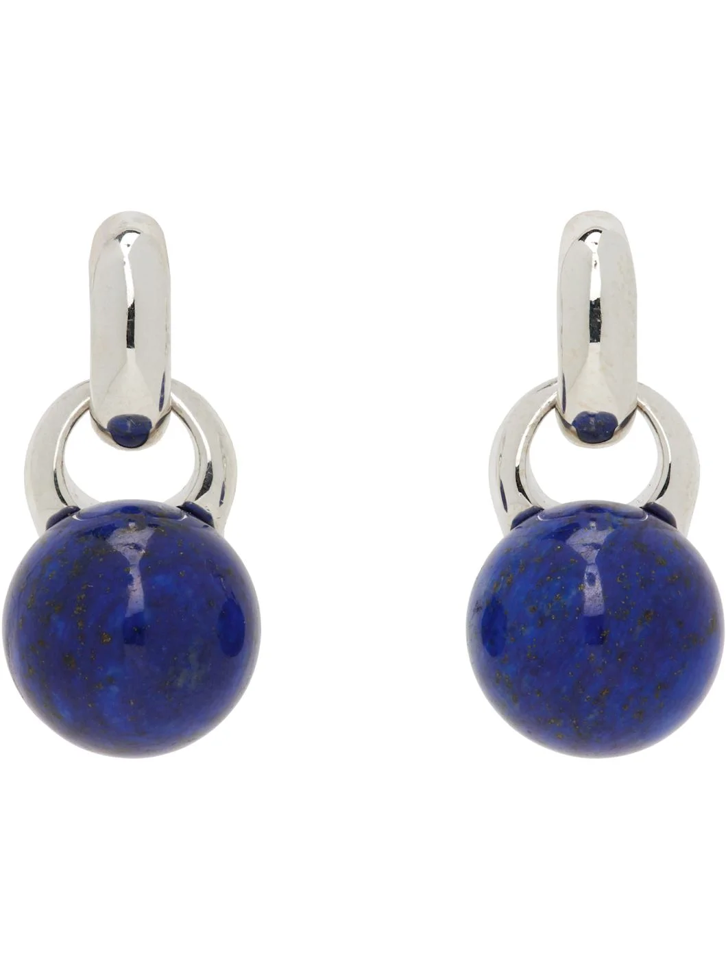 Pair of handcrafted drop earrings in sterling silver. · Lapis lazuli pendant · Post-stud fastening · H1" x W0.5" Supplier color: Lapis Sterling silver, lapis lazuli. Made in United States 261942F022029