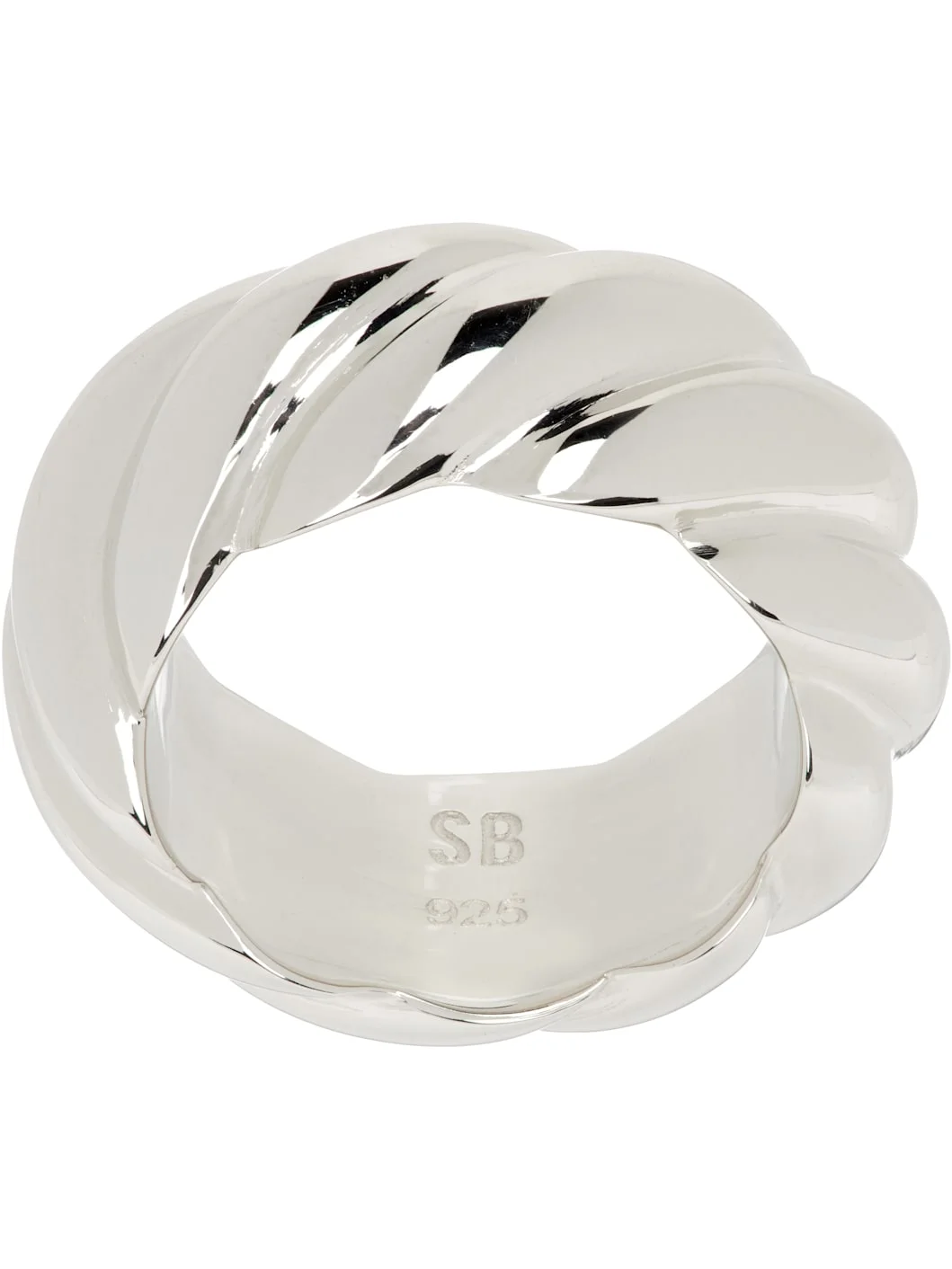 Handcrafted ring in sterling silver. · Ridged pattern at face · Hallmarking at inner band Supplier color: Silver 925 sterling silver. Made in United States 252942F024004