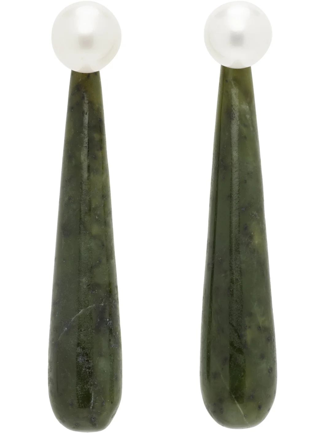 Pair of handcrafted drop earrings in sterling silver. · Freshwater pearl at face · Green jade stone at drop · Post-stud fastening · H2" x W0.5" Supplier color: Jade 925 sterling silver, freshwater pearl, jade. Made in United States 252942F022052