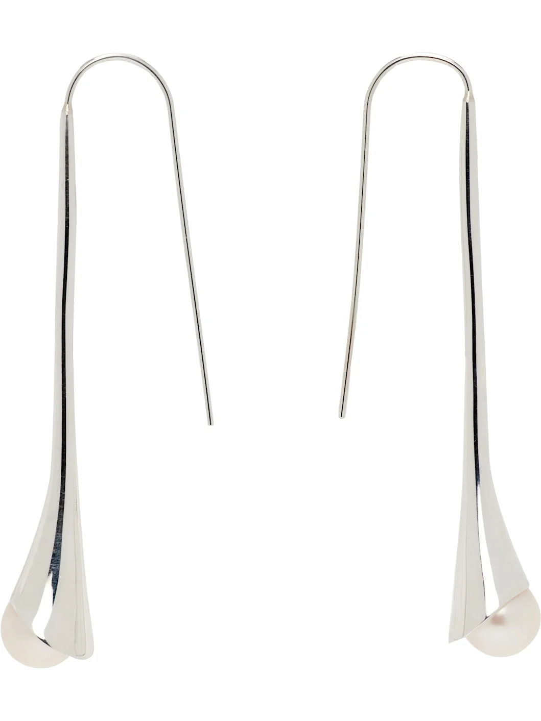 Pair of handcrafted drop earrings in sterling silver. · Freshwater pearl at drop · French-hook fastening · H2.25" x W0.5" Supplier color: White pearl 925 sterling silver, freshwater pearl. Made in United States 252942F022049