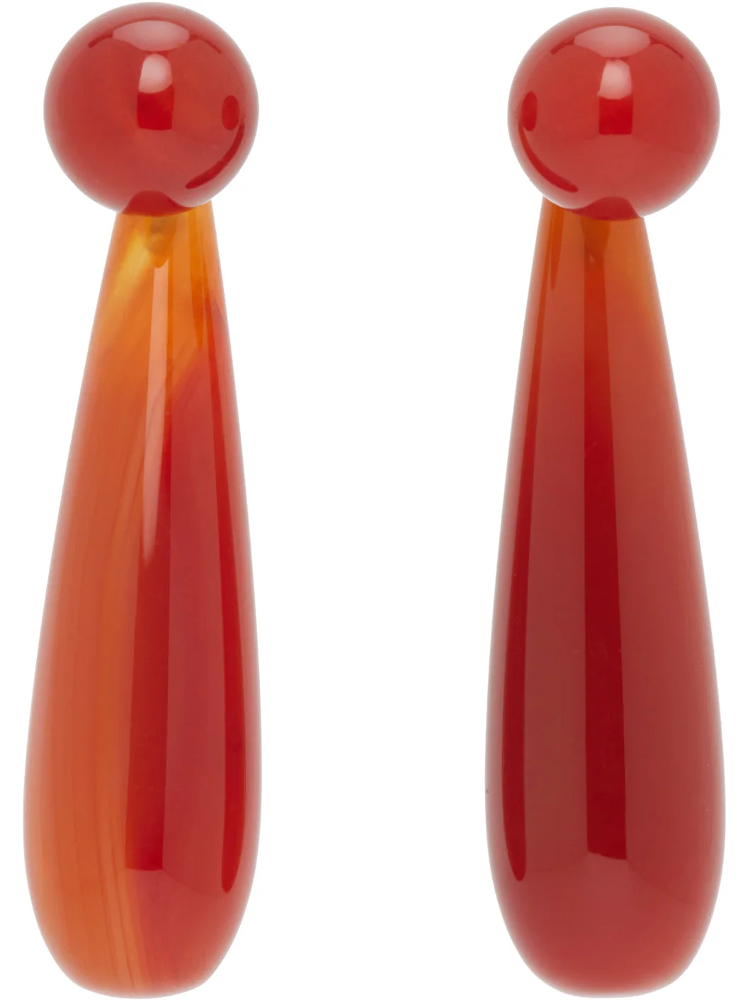 Pair of handcrafted drop earrings in sterling silver. · Carnelian stone at face and drop · Post-stud fastening · H1.5" x W0.5" Supplier color: Carnelian 925 sterling silver, carnelian. Made in United States 252942F022005