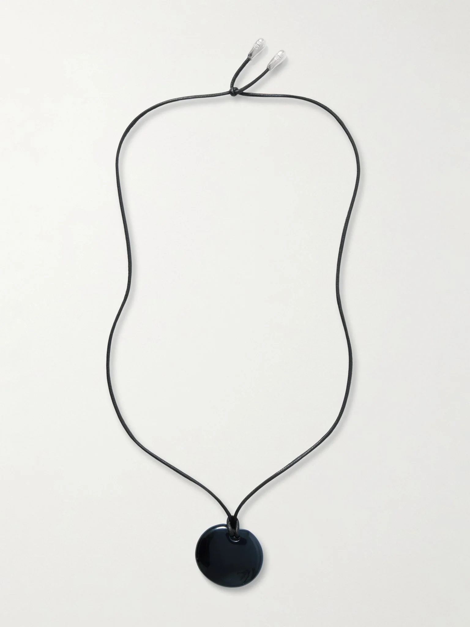 Sophie Buhai's necklace is strung with an onyx stone - the large rounded shape represents the 'Full Moon', a symbol of feminine power. It's handcrafted in Los Angeles with an adjustable vegan leather cord tipped with silver droplets at each end. Details & Care - Onyx - Tie fastening - Comes with a dust bag