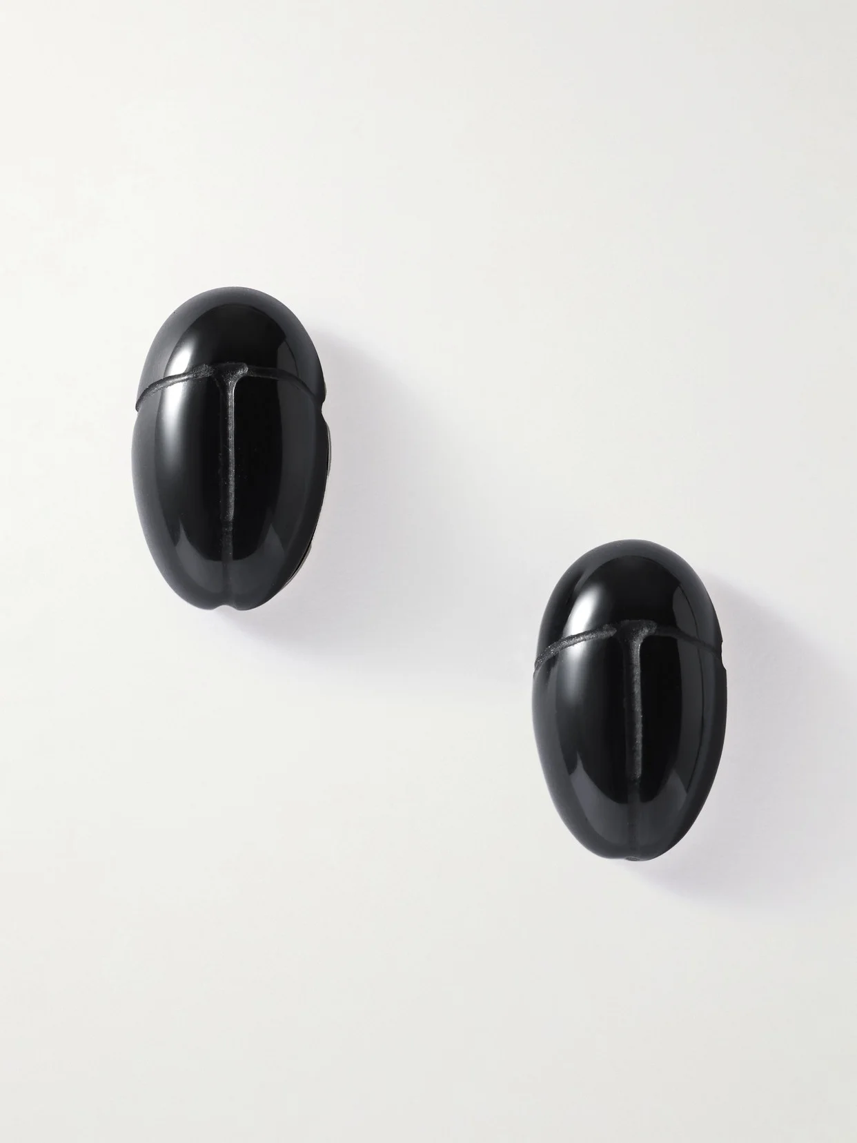 Sophie Buhai's earrings are shaped like scarab beetles, which are thought to symbolize rebirth, transformation and protection. They've been handcrafted in Los Angeles from silver and onyx.