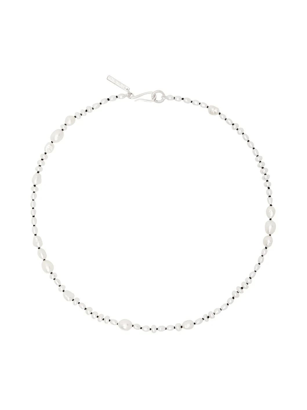Handcrafted beaded freshwater pearl necklace in white. · Logo plaque at hook-eye fastening · Sterling silver hardware · L16" Supplier color: White pearl Freshwater pearl, 925 sterling silver. Made in United States 241942F010001
