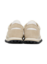 Low-top suede and semi-transparent mesh sneakers in beige. · Lace-up closure · Logo patch at tongue · Padded collar · Grained calfskin and mesh lining · Foam rubber midsole · Treaded rubber sole Supplier color: Sponge Upper: textile, leather. Sole: rubber. Made in Slovakia (Slovak Republic) 241818F128022