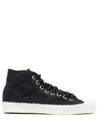 distressed-finish high top sneakers black distressed finish contrasting toecap flat rubber sole front lace-up fastening Imported Composition Sole: Rubber 100% Outer: Fabric 100% Lining: Fabric 100% SIZE & FIT Measurement HEEL 3.93 in(10 cm) Sole height 1.18 in(3 cm)