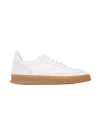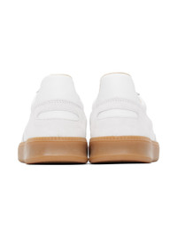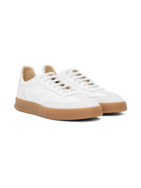 Low-top buffed nappa leather and suede sneakers in white. · Lace-up closure · Logo patch at padded tongue · Padded collar · Perforated detailing at inner side · Logo-embossed padded leather footbed · Buffed leather and mesh lining · Treaded rubber sole Supplier color: White Upper: leather. Sole: rubber. Made in Slovakia (Slovak Republic) 241818F128020