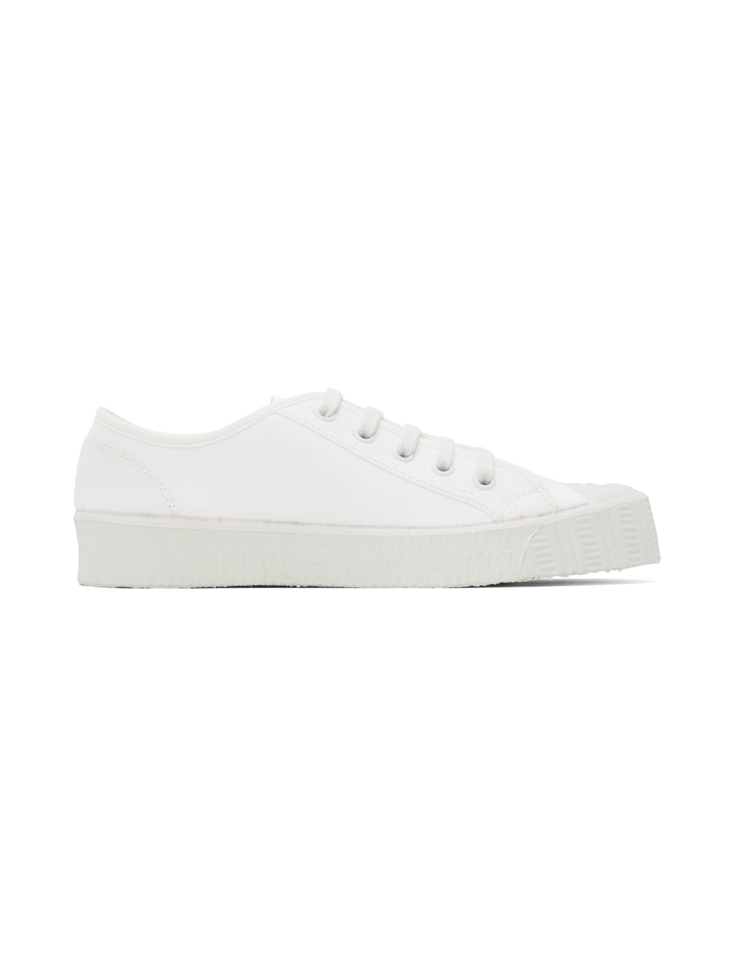 Low-top canvas sneakers in white. · Rubber cap toe · Lace-up closure · Textile logo patch at tongue · Eyelets at inner side · Textured rubber midsole · Treaded rubber sole Supplier color: White