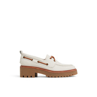 This modern, fashion-forward take on our classic Authentic Original™ Boat Shoe is for those who want a bold look. The ladies' Authentic Original™ 2-Eye Boat Lug features our timeless boat shoe upper, crafted from premium leather with traditional moccasin construction, sitting atop a rugged lug outsole. Luxe metallic detailing and rawhide leather laces on the 360° Lacing System™ bring balance to the rugged silhouette. Pair these trendy boaters with jeans for a versatile look or with stockings and a skirt for a fashion-forward outfit. Materials - Material: Leather Features - Boat Shoe - Round Toe - Lug Sole - 360° Lacing System™ technology for a customized fit - Style Code #14087116 Measurements - Heel Height: 4.5" - Platform Height: 2"