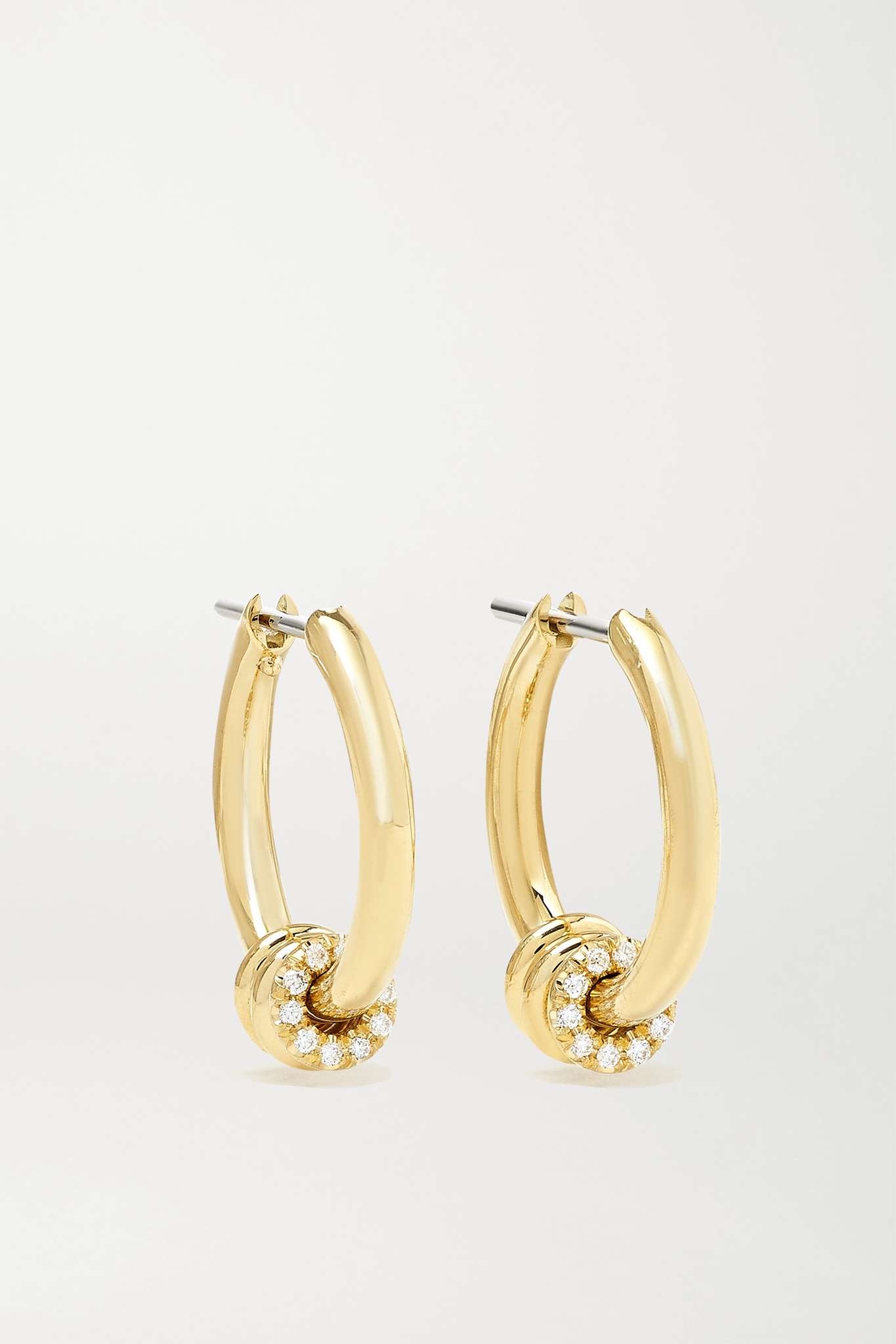 EDITORS'NOTES Husband and wife duo Yves Spinelli and Dwyer Kilcollin's love of modern architecture informs the brand's simple, refined jewelry. Hand-cast from 18-karat gold, these 'Ara' hoop earrings are strung with three dainty annulets, the first of which is encrusted with 0.30-carats of sparkling brilliant-cut diamonds. Wear yours day or night. SIZE & FIT This item’s measurements are: - Length: 1.5cm / 0.6in - Width: 0.4cm / 0.2in - Drop: 1.5cm / 0.6in DETAILS & CARE - Round brilliant-cut G VS1 diamonds, total weight: 0.30-carats - Post fastening for pierced ears - Come in a designer-stamped box - This piece is handmade and as such may have some small flecks or scratches - NET-A-PORTER is a certified member of the Responsible Jewellery Council
