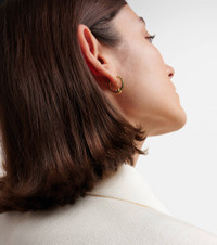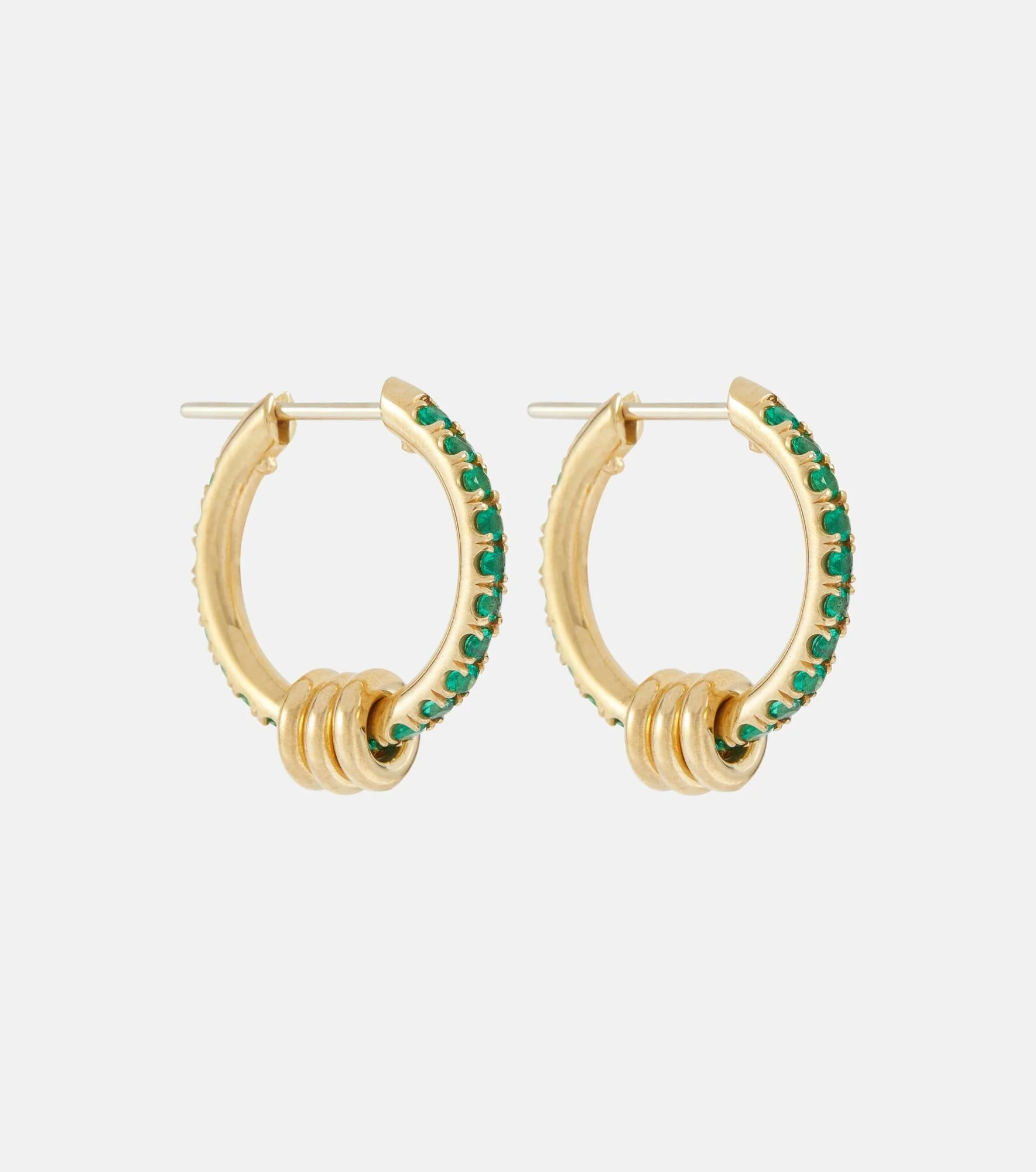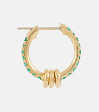 Spinelli Kilcollin’s Ara earrings are made from gleaming 18kt yellow gold in a classic hoop silhouette. They feature three dainty annulets each and are adorned with sparkling 1.12ctw round-cut emeralds in a pavé setting. Product Details - Material: 18kt yellow gold - Made in the USA - Stone I: emerald, round-cut, pavé setting - Designer color name: Yellow Gold - Item number: P00782570 Size & Fit - Length 18mm-0.7" - Min. width 2mm-0.1" - Max. width 5mm-0.2" - Inner diameter 14mm-0.55"