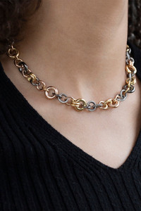 DETAILS AND INSIGHT Spinelli Kilcollin atlantis mx pave necklace in yellow gold. 18K Yellow Gold, Black Rhodium Plated Silver 8ctw melee diamonds 16" L Style N-ATLMXPV16INTRLK