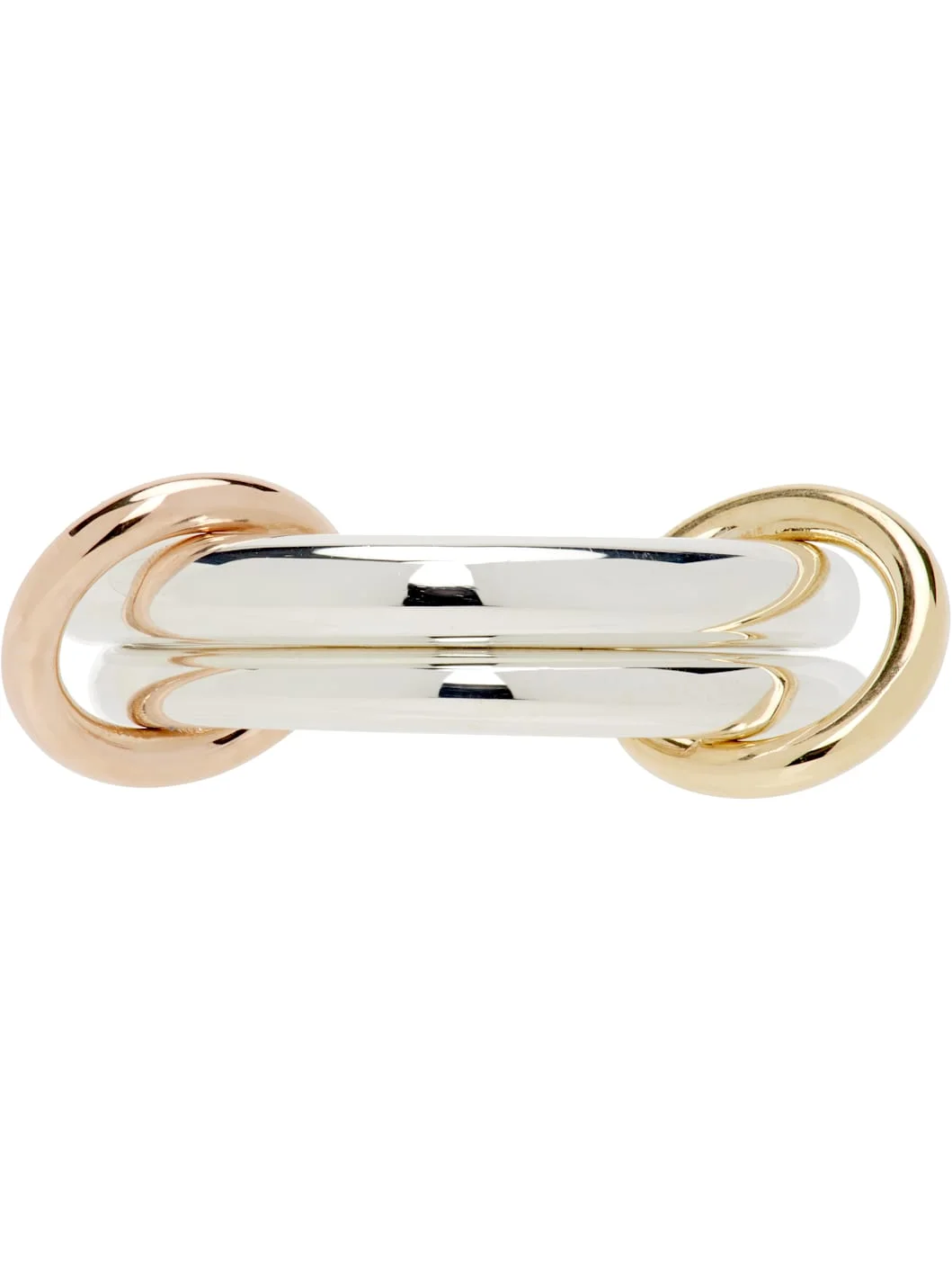 Connected and stacked band rings in sterling silver. · Sliding hoops in solid 18k yellow and rose gold · Hallmarking at inner bands Supplier color: Silver 925 sterling silver, 18k gold. Made in United States 261558F011028