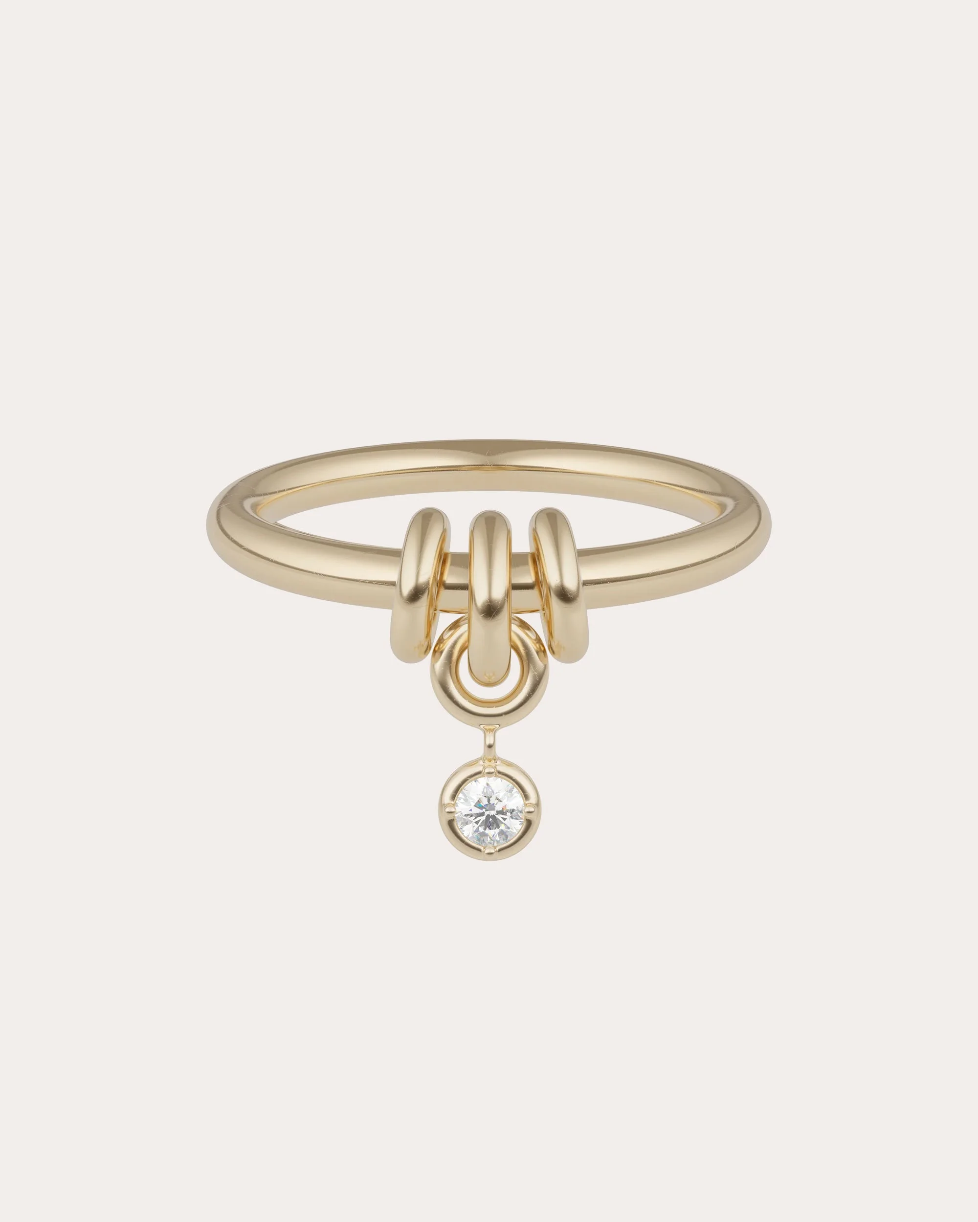 Rooted in simplicity, the Pia ring decorates its 18-karat gold band with a dancing bezel-set diamond drop. A trio of orbiting annulets gives nod to Spinelli's signature aesthetic. 18k yellow gold and white diamond Diamond carat: 0.1 ctw Professional jewelry clean Handmade in the USA If you would like to consult with a fine jewelry expert, please email us at jewelryconcierge@olivela.com. Measurements Band width: 2.3mm Need help with sizing? Download our ring size guide or get in touch with a fine jewelry expert by emailing us at jewelryconcierge@olivela.com .