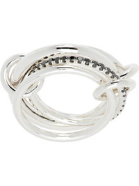 Connected and stacked rings in sterling silver. · Connecting hoops in sterling silver · Central band with pave-set black diamonds · Diamonds: approx. 0.45 cttw · Hallmarking at inner band Supplier color: Silver 925 sterling silver, diamond. Made in United States 261558F011019