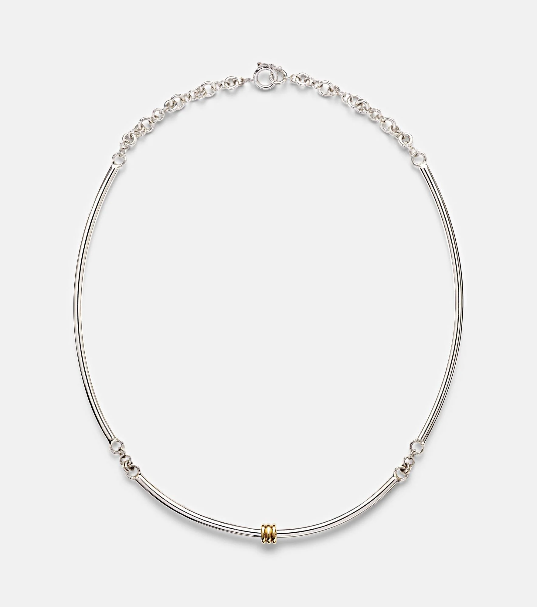 Spinelli Kilcollin's jewelry is handcrafted locally by a team of artisans in Los Angeles. Expertly made from 925 sterling silver, the Helio Tria necklace features cable chain links and a trio of 18kt yellow gold annulets for an elegant edge. Product Details - Material: 925 sterling silver, 18kt yellow gold - Handmade in the USA - Item color: silver - Chain type: cable - Closure: clasp fastening - Item number: P01118754 Size & Fit - Adjustable length - Max. width 6mm-0.25" - Min. length 36,5cm-14.5" - Max. length 40,5cm-16"