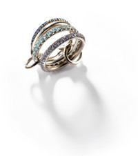 Iris sterling silver linked ring with sapphires, aquamarine and tanzanite