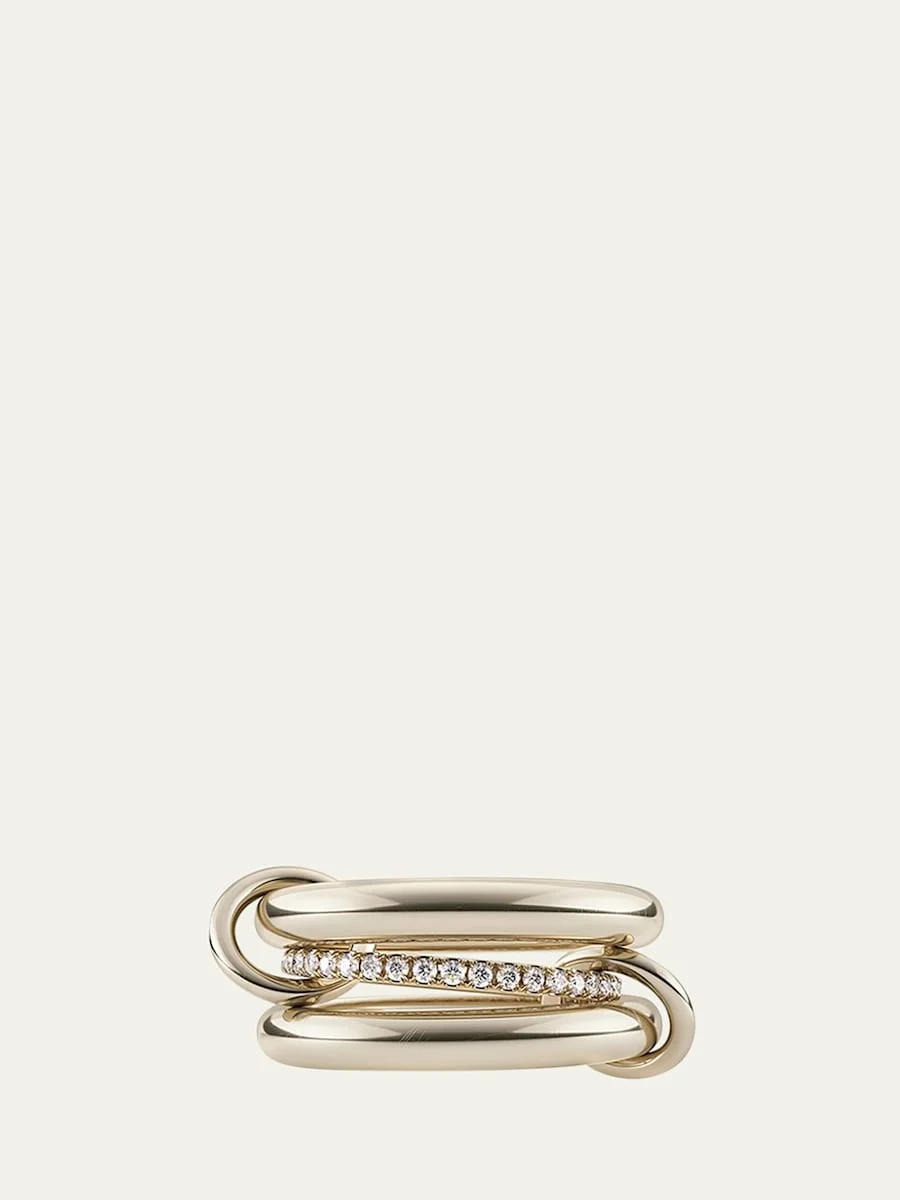Libra ring from Spinelli Kilcollin. 18-karat yellow gold rings and connectors. Pavé round white diamond at center ring. 0.80 total diamond carat weight. Made in USA. Shipping Direct from Vendor, usually ships within 56 business days. Online Inquiries: BGS21_Y4TM5| Store Inquiries: #3190641