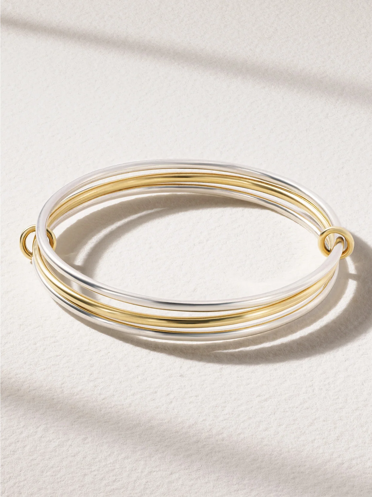 Spinelli Kilcollin's ‘Lumin' set of three bracelets has the same interlinked design as its cult ‘Galaxy' rings. They're handmade from 18-karat yellow and white gold.