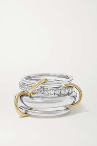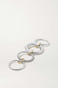 EDITORS'NOTES The different metals and colors in Spinelli Kilcollin's signature stacks are carefully chosen to look beautiful no matter how they're combined. Handmade in the brand's studio, this 'Luna' set includes four rings cast from sterling silver (and held together by 18-karat gold annulets), with white diamonds encrusting the center band. Pile them on one finger or spread them across your whole hand. SIZE & FIT - US sizing DETAILS & CARE - Round brilliant-cut VS diamonds, total weight: 1.20-carats - This piece is handmade and as such may have some small flecks or scratches - This piece has been certified in accordance with the Hallmarking Act 1973