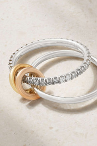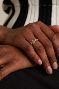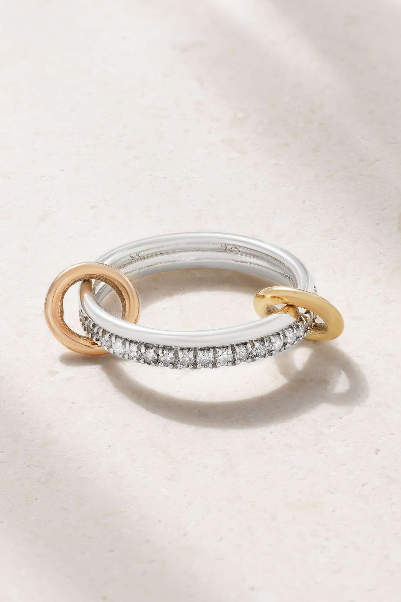 EDITORS'NOTES Spinelli Kilcollin's co-founder Yves Spinelli has a passion for astrology and stars - he likens the label's iconic rings to the connected constellations in space. Held together by 18-karat yellow and rose gold links, this 'Marigold' version is handmade from sterling silver and features one band completely encrusted with 1.20-carats of shimmering brilliant-cut diamonds. Wear yours stacked or splayed across two fingers.<br><br>Shown here with: [Proenza Schouler Top id1151670], [Totême Pants id1155269], [Spinelli Kilcollin Rings id1214568], [Spinelli Kilcollin Rings id1214571], [Spinelli Kilcollin Earrings id1214572]. SIZE & FIT - US sizing DETAILS & CARE - Brilliant-cut G VS1 diamonds, total weight: 1.20-carats - Come in a designer-stamped box - This piece is handmade and as such may have some small flecks or scratches - This piece has been certified in accordance with the Hallmarking Act 1973