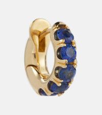 When it comes to glamorous accessorizing for a black-tie occasion, the Mini Macro Hoop earring from Spinelli Kilcollin is an obvious choice. Handmade in Los Angeles from 18-karat yellow gold, it's set with 0.5ct pavé sapphires that add a luminous blue touch. It's designed for pierced ears and, as a single piece, is meant to be mixed-and-matched with other stunning options from the label. Product Details - Material: 18kt yellow gold - Handmade in the USA - Stone I: sapphire, round-cut, prong setting - Closure: hinge - Single earring - For pierced ears - Designer color name: Blue/Gold - Item number: P00588104 Size & Fit - Max. width 3mm-0.1" - Diameter 12mm-0.45" - Inner diameter 6mm-0.25"