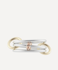 DETAILS Ring Sterling silver linked bands 18ct gold connectors 18ct rose gold annulets Handcrafted in Los Angeles COMPOSITION & SIZE 18ct Gold; 18ct Rose Gold; Sterling Silver